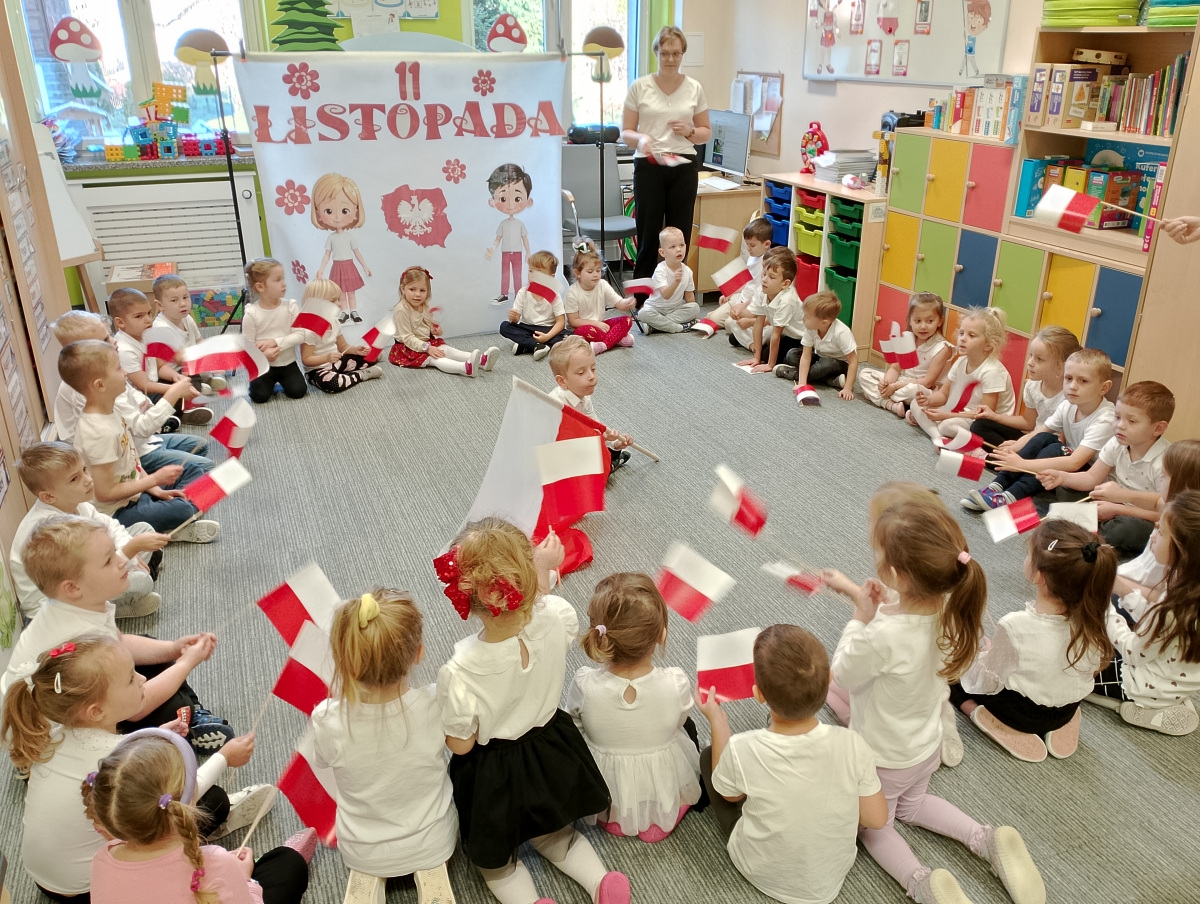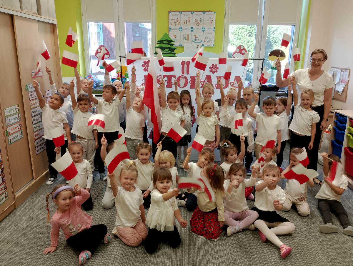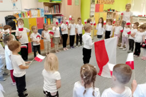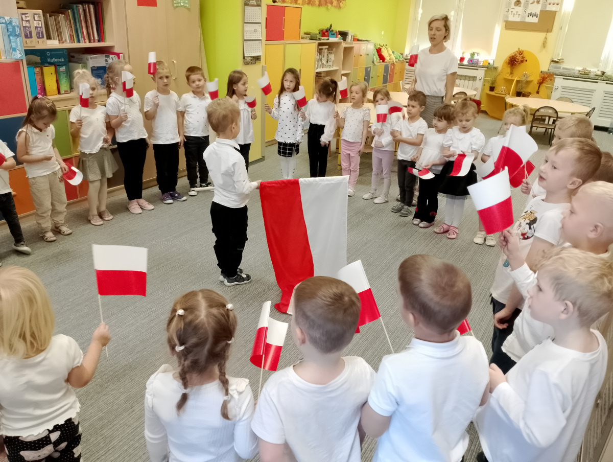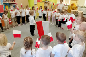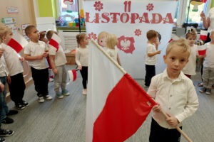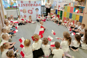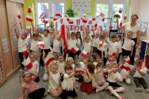 Dziś w naszym przedszkolu uroczyście obchodziliśmy Narodowe Święto Niepodległości – 11 listopada. Był to wyjątkowy dzień pełen nauki, wspólnego śpiewania i patriotycznej atmosfery. Podczas zajęć dydaktycznych dzieci poznały historię odzyskania niepodległości oraz najważniejsze symbole narodowe – flagę, godło i hymn. Rozmawialiśmy o tym, co oznacza wolność i dlaczego ten dzień jest tak ważny dla wszystkich Polaków. O godzinie 11:11 wzięliśmy udział w ogólnopolskiej akcji „Szkoła do hymnu”, wspólnie i z wielkim przejęciem śpiewając „Mazurka Dąbrowskiego”. Na zakończenie dnia dzieci wykonały piękne prace plastyczne o tematyce narodowej – pojawiły się dumne orły i Polska w barwach narodowych.