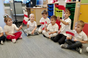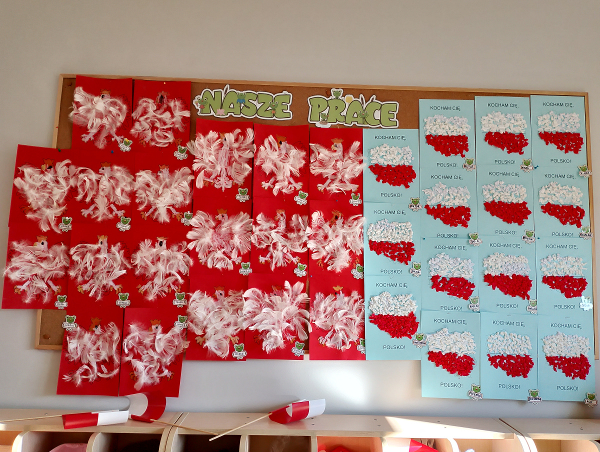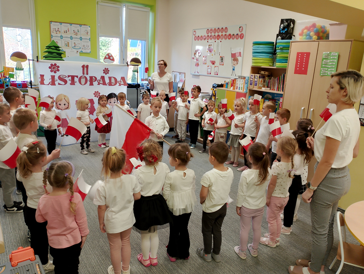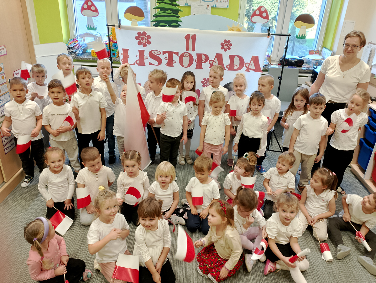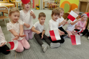 Dziś w naszym przedszkolu uroczyście obchodziliśmy Narodowe Święto Niepodległości – 11 listopada. Był to wyjątkowy dzień pełen nauki, wspólnego śpiewania i patriotycznej atmosfery. Podczas zajęć dydaktycznych dzieci poznały historię odzyskania niepodległości oraz najważniejsze symbole narodowe – flagę, godło i hymn. Rozmawialiśmy o tym, co oznacza wolność i dlaczego ten dzień jest tak ważny dla wszystkich Polaków. O godzinie 11:11 wzięliśmy udział w ogólnopolskiej akcji „Szkoła do hymnu”, wspólnie i z wielkim przejęciem śpiewając „Mazurka Dąbrowskiego”. Na zakończenie dnia dzieci wykonały piękne prace plastyczne o tematyce narodowej – pojawiły się dumne orły i Polska w barwach narodowych.