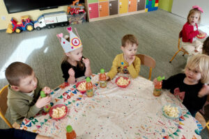 Urodziny w naszym przedszkolu to coś naprawdę wyjątkowego – to ważna tradycja, którą bardzo lubimy i pielęgnujemy. To moment, kiedy każde dziecko może poczuć się naprawdę wyjątkowo i radośnie spędzić ten dzień razem z przedszkolną rodziną!