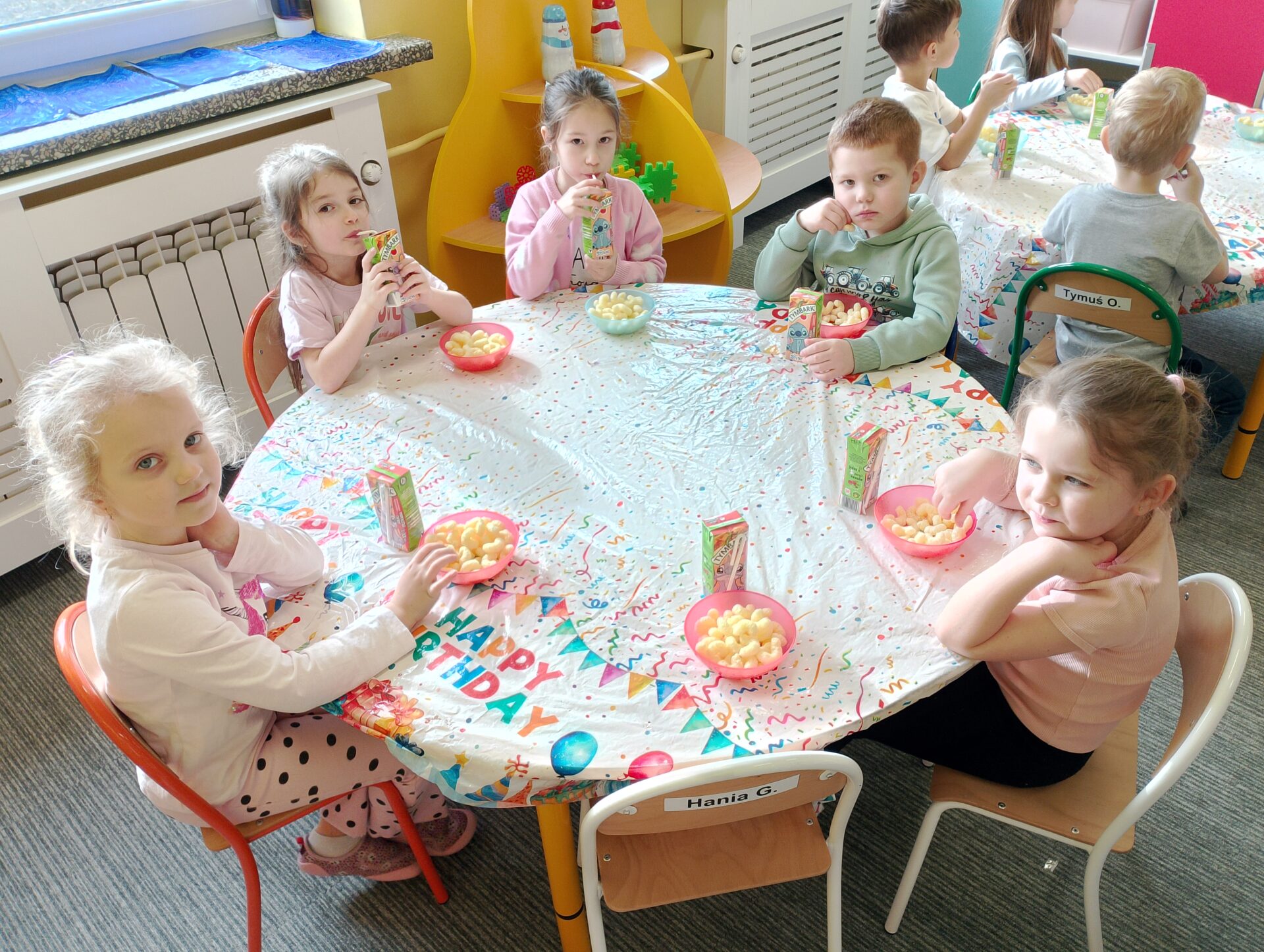W czwartek 19 lutego świętowaliśmy urodziny naszych przedszkolaków urodzonych w lutym. Było kolorowo, radośnie i naprawdę uroczyście! Nie zabrakło wspólnych zabaw z chustą animacyjną, tańców i głośnego „Happy Birthday!” zaśpiewanego po angielsku. Solenizanci dostali mnóstwo pięknych życzeń, a na zakończenie czekał na wszystkich pyszny urodzinowy poczęstunek!