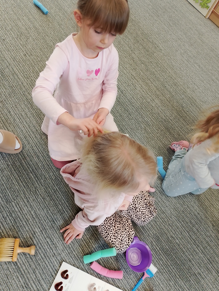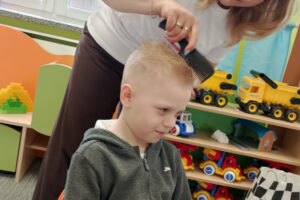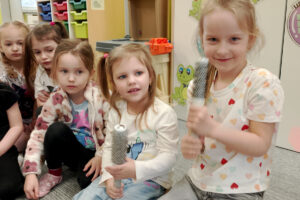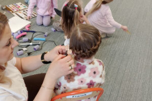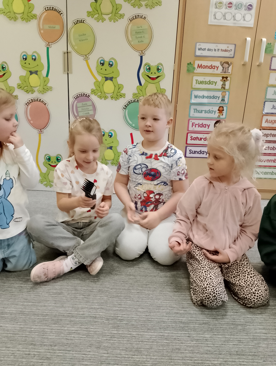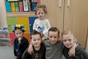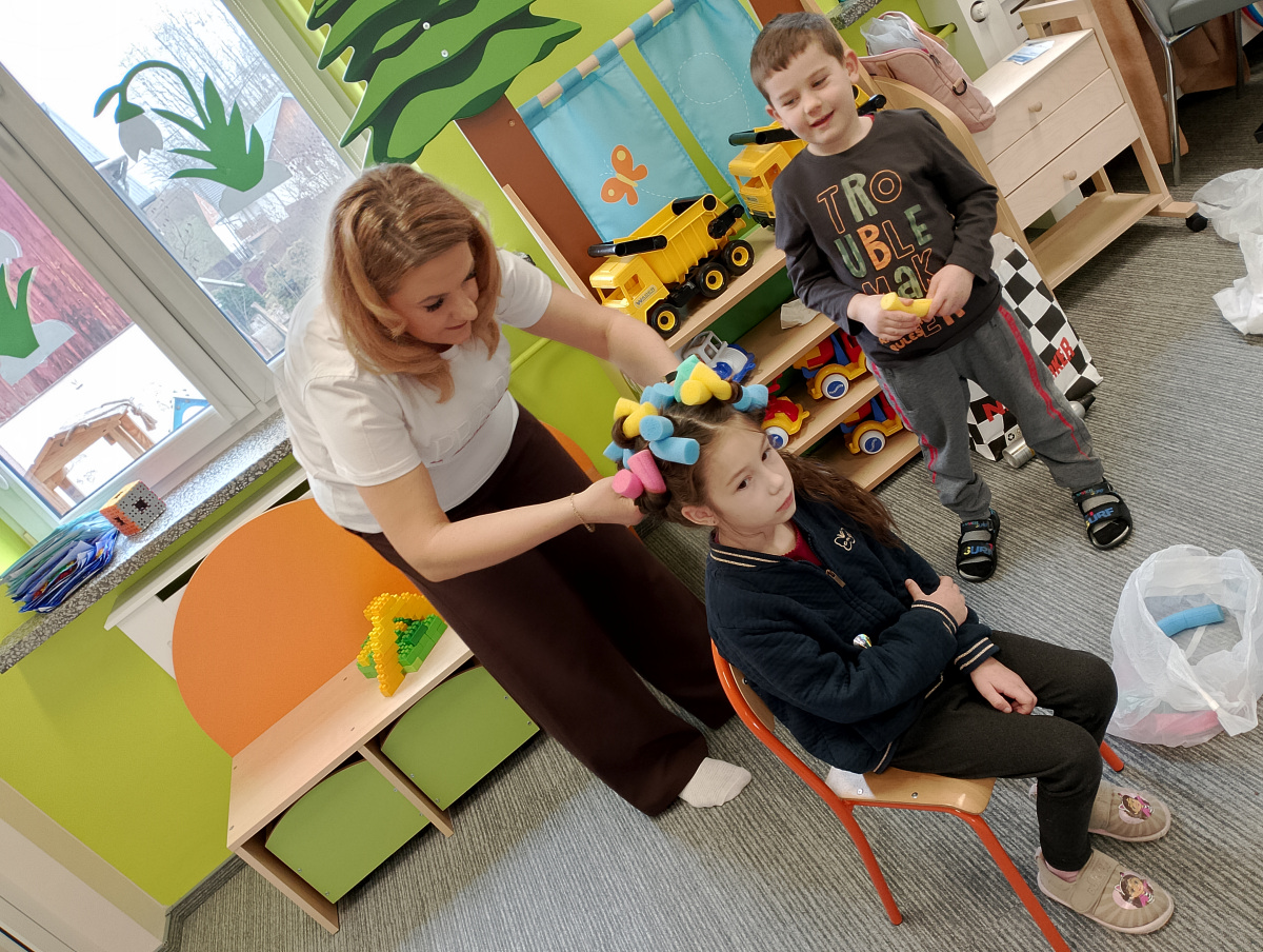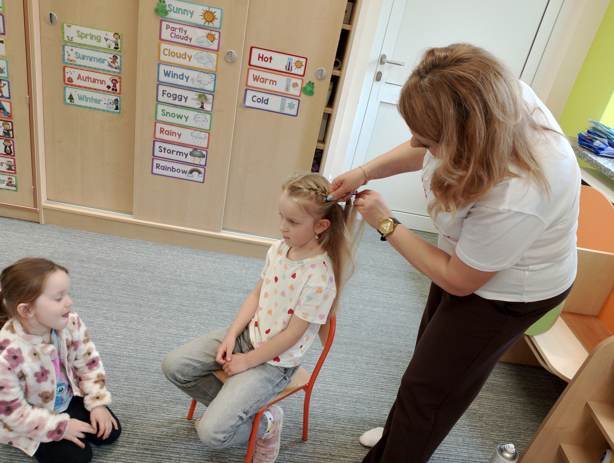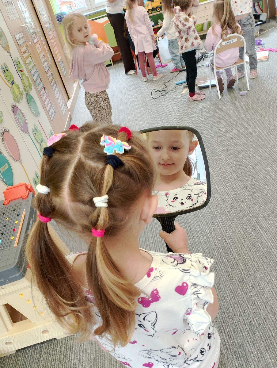 W ramach zajęć z preorientacji zawodowej odwiedził nas wyjątkowy gość – fryzjerka, Pani Monika, mama naszego przedszkolaka Tymusia. Podczas spotkania opowiedziała dzieciom o swojej pracy, przybliżając zawód fryzjera w ciekawy i przystępny sposób. Przedszkolaki miały okazję zobaczyć różnorodne narzędzia fryzjerskie, palety kolorów oraz profesjonalny sprzęt wykorzystywany w salonie. Największą atrakcją okazała się część praktyczna – dzieci z ogromnym zaangażowaniem wcielały się zarówno w rolę fryzjera, tworząc fryzury swoim kolegom i koleżankom, jak i w rolę klienta, oddając się w ręce Pani Moniki i innych dzieci.To były cudowne zajęcia, pełne radości, uśmiechu i nowych doświadczeń. Dzieci były zachwycone i aktywnie uczestniczyły we wszystkich proponowanych aktywnościach.
