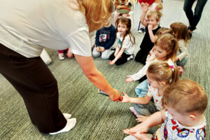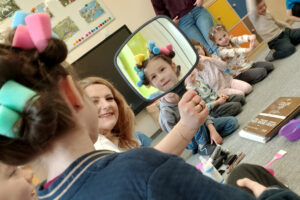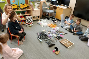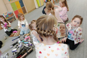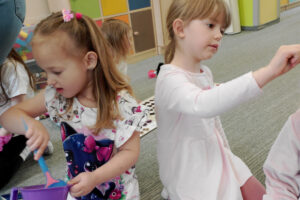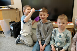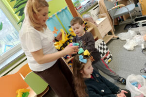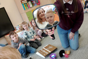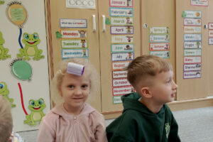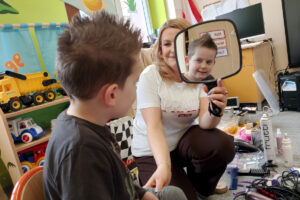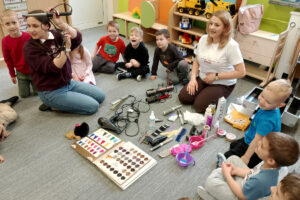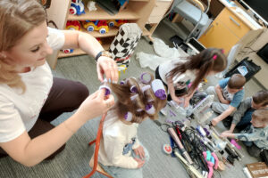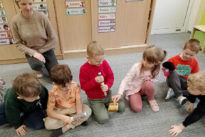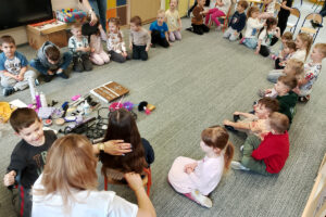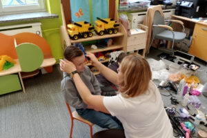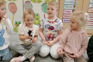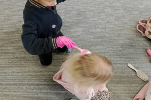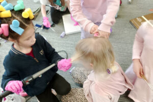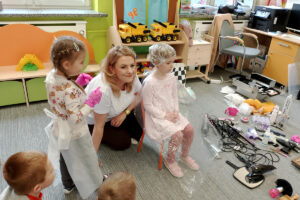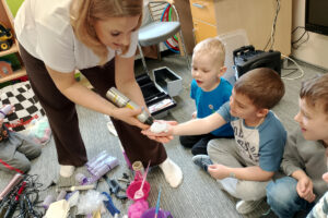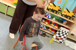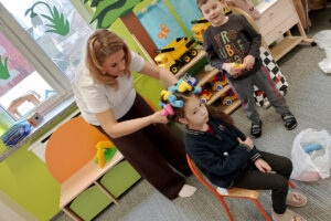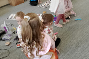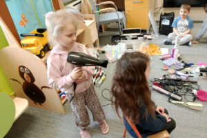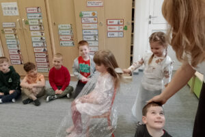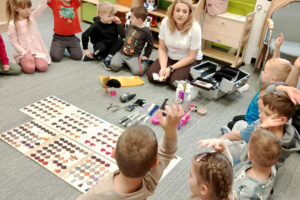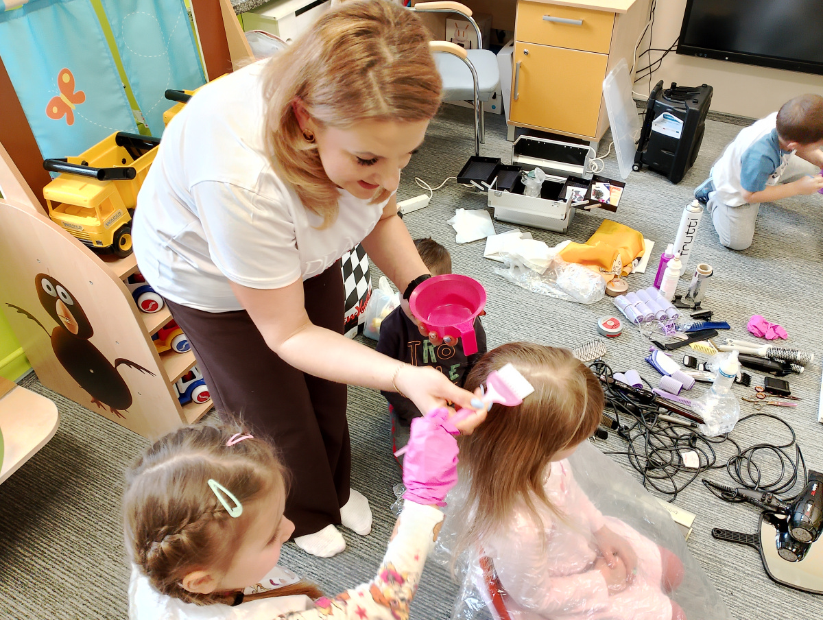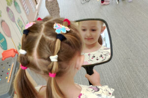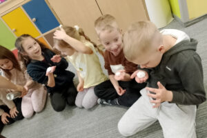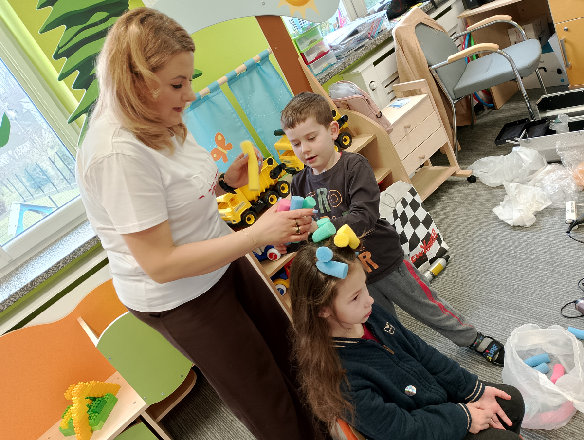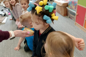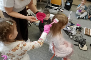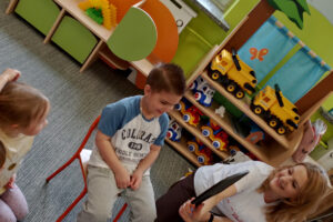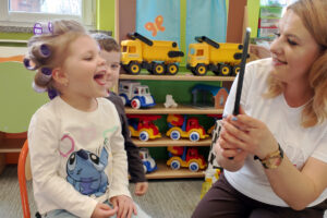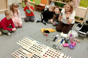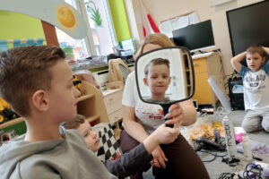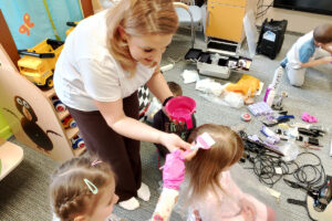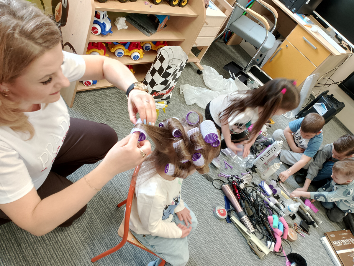 W ramach zajęć z preorientacji zawodowej odwiedził nas wyjątkowy gość – fryzjerka, Pani Monika, mama naszego przedszkolaka Tymusia. Podczas spotkania opowiedziała dzieciom o swojej pracy, przybliżając zawód fryzjera w ciekawy i przystępny sposób. Przedszkolaki miały okazję zobaczyć różnorodne narzędzia fryzjerskie, palety kolorów oraz profesjonalny sprzęt wykorzystywany w salonie. Największą atrakcją okazała się część praktyczna – dzieci z ogromnym zaangażowaniem wcielały się zarówno w rolę fryzjera, tworząc fryzury swoim kolegom i koleżankom, jak i w rolę klienta, oddając się w ręce Pani Moniki i innych dzieci.To były cudowne zajęcia, pełne radości, uśmiechu i nowych doświadczeń. Dzieci były zachwycone i aktywnie uczestniczyły we wszystkich proponowanych aktywnościach.