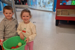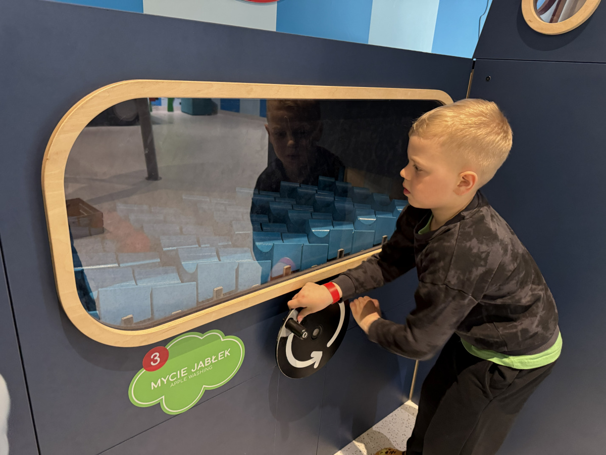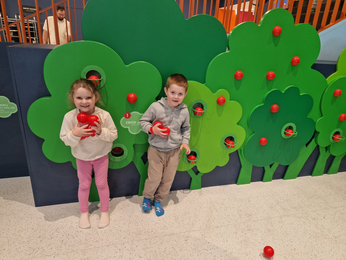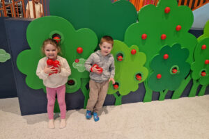 - Strefa Jabłkowego Sadu – nauka planowania i logicznego myślenia poprzez zbieranie, sortowanie jabłek i tworzenie soku,