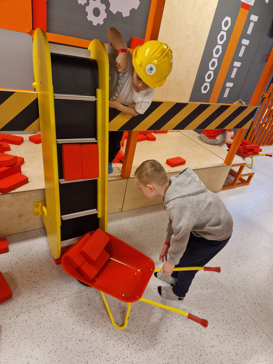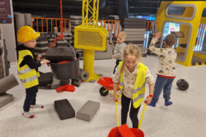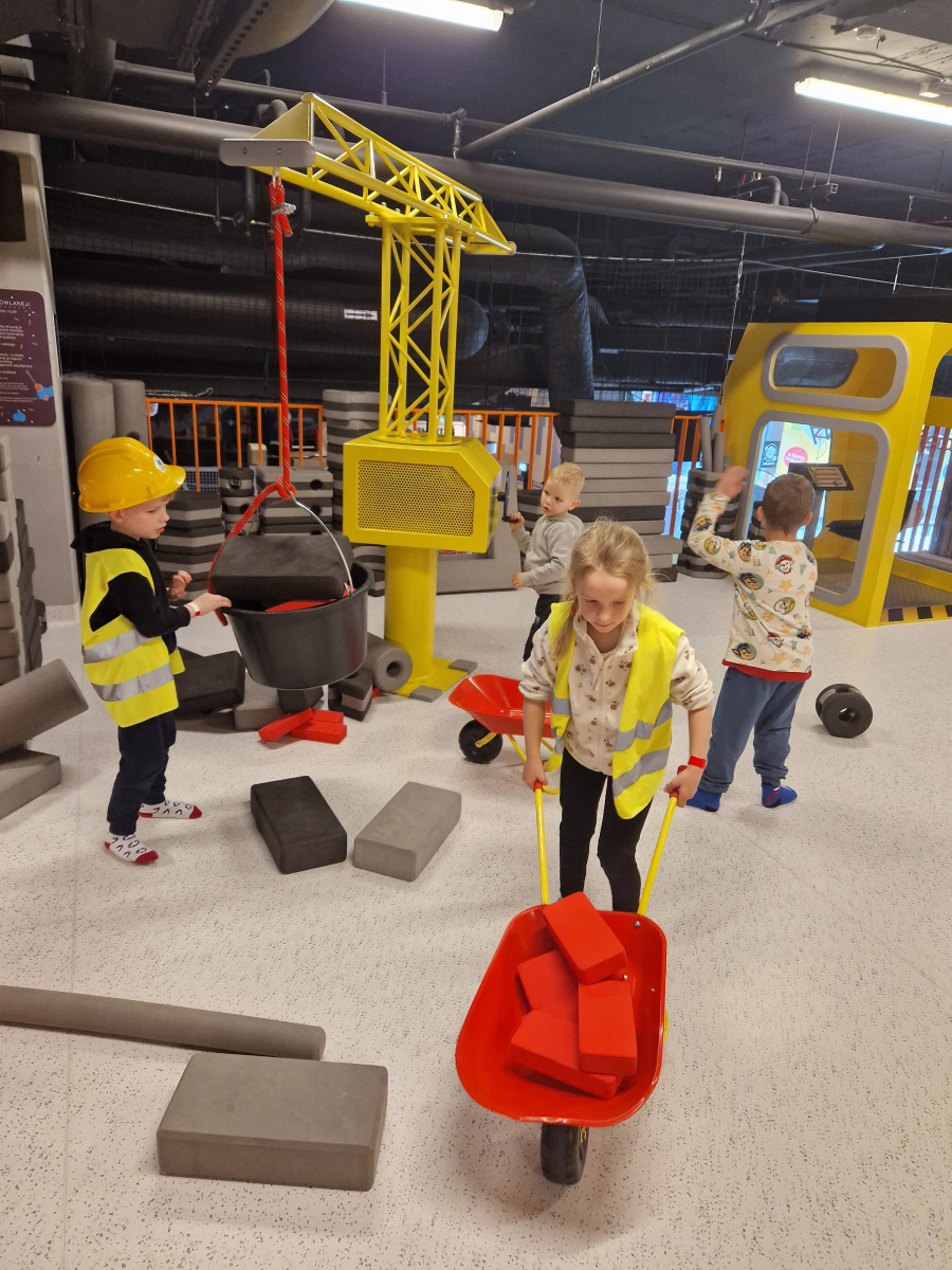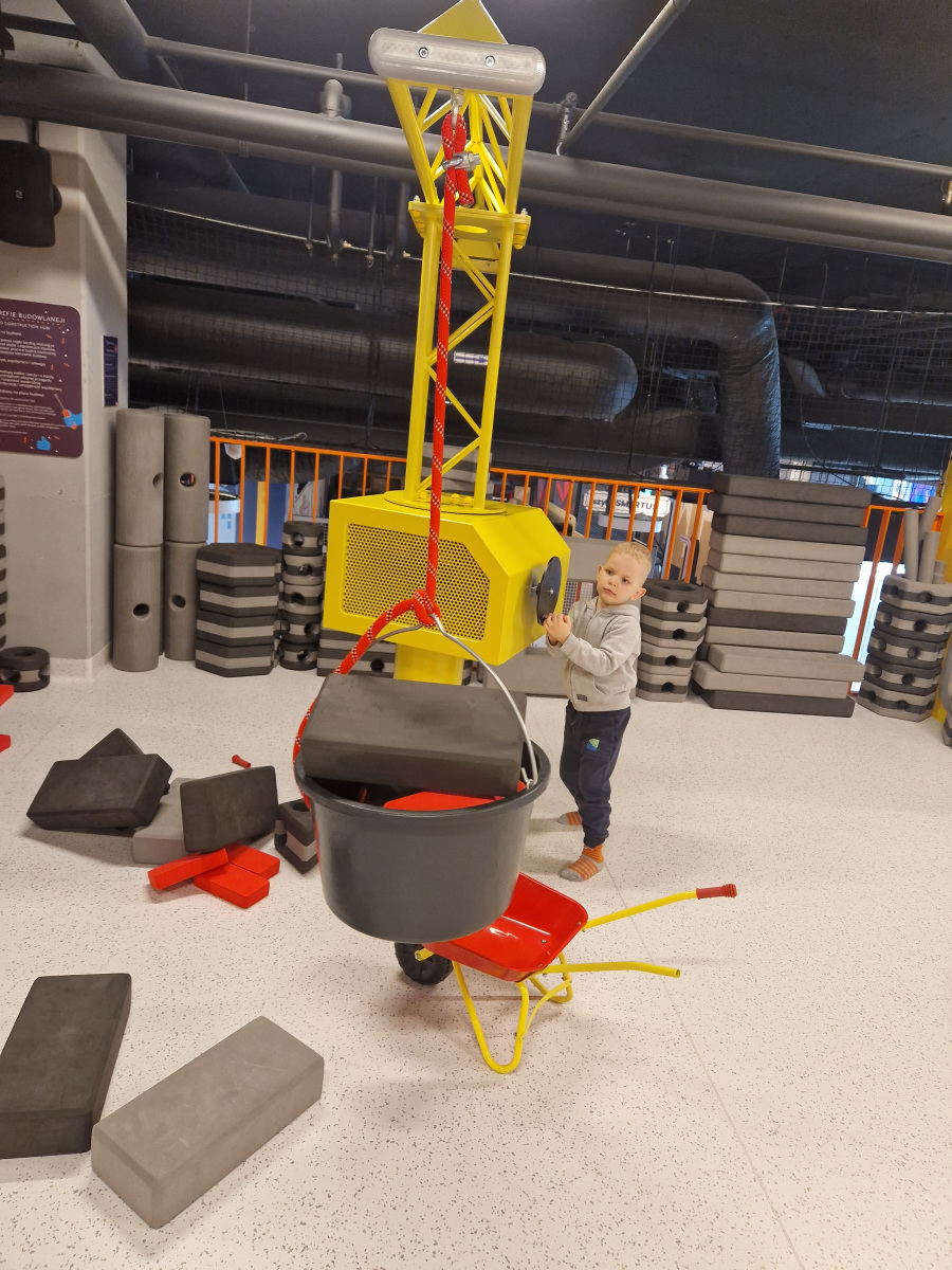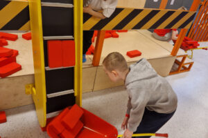 - Strefa Budowlana – kreatywna zabawa z klockami XXL i żurawiem,