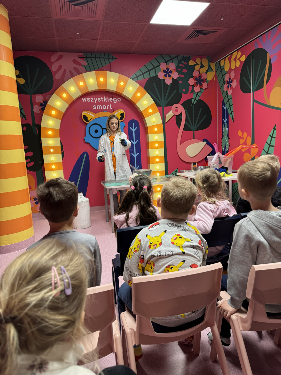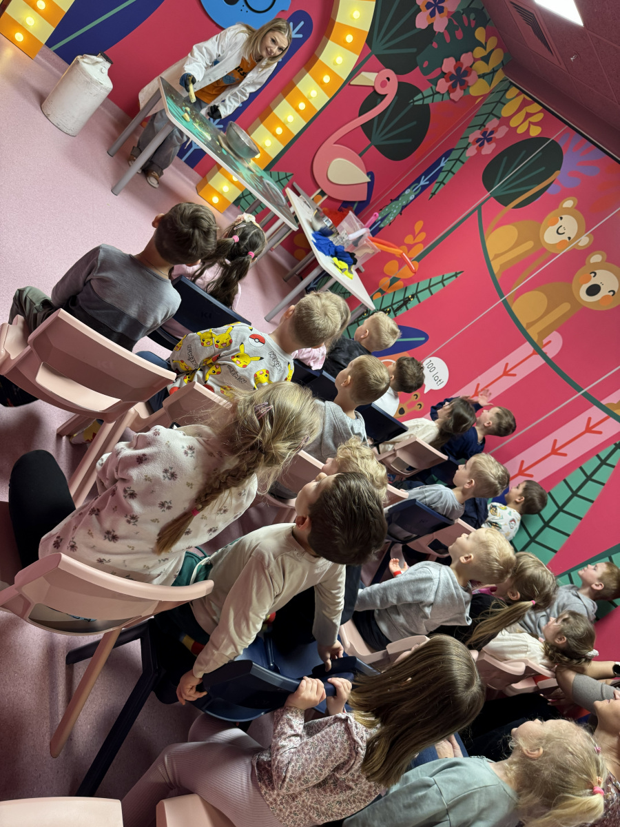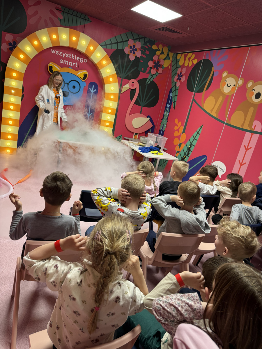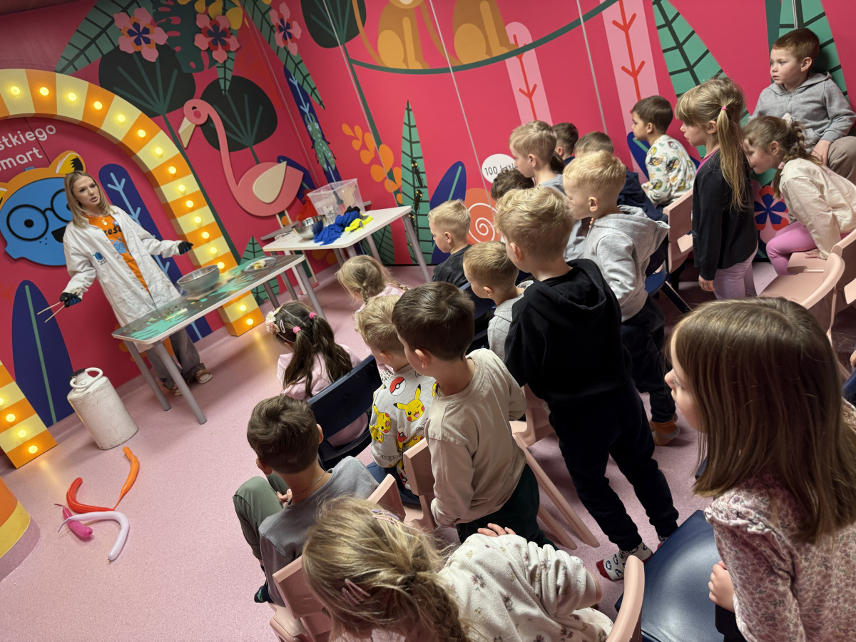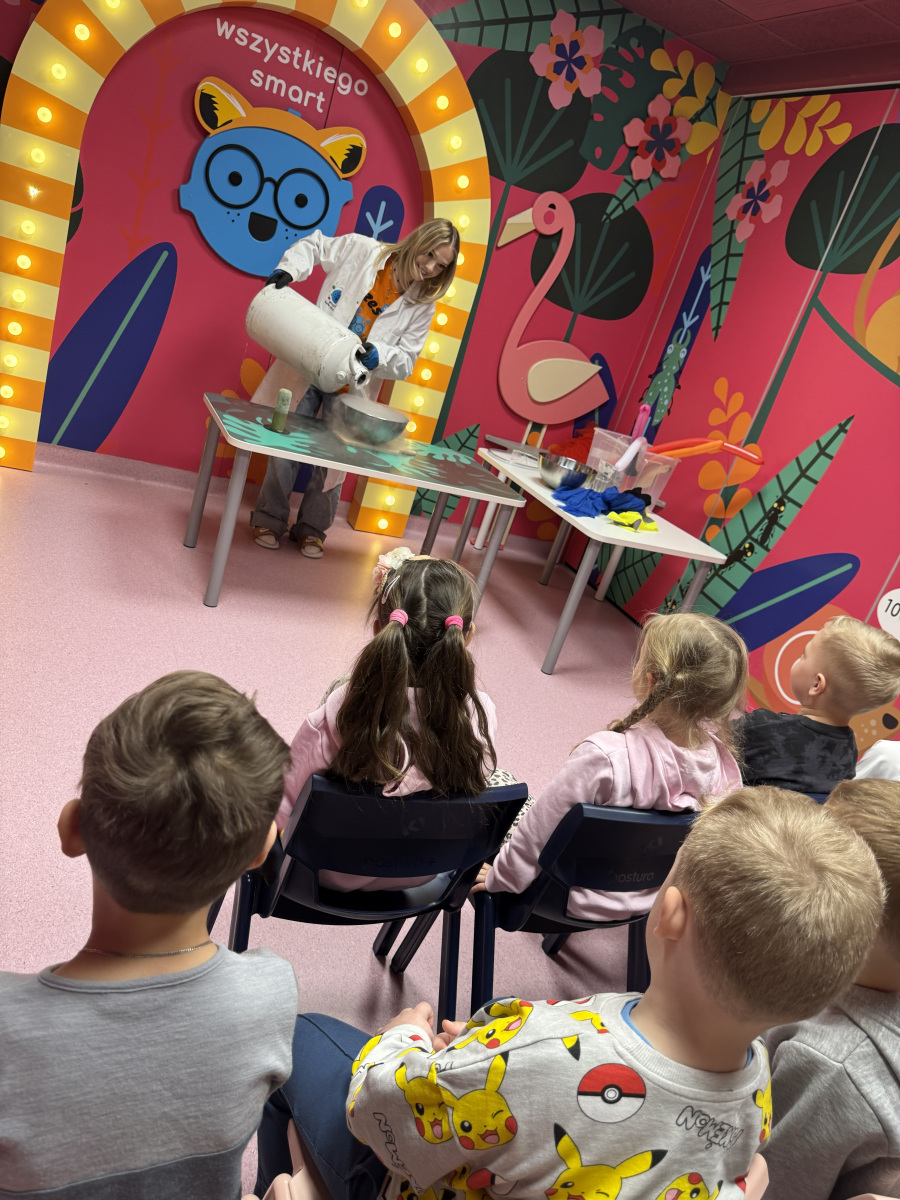 Ogromne emocje wzbudził również pokaz naukowy z wykorzystaniem ciekłego azotu – to właśnie on wywołał najwięcej zachwytu i niezapomnianych reakcji! Po pełnym wrażeń dniu dzieci zjadły pyszny obiad, a następnie w doskonałych nastrojach wróciły do przedszkola. Najpiękniejszym podsumowaniem tej wycieczki były słowa samych dzieci, które jednogłośnie stwierdziły, że był to najlepszy dzień w ich życiu… i od razu zaczęły pytać: „Kiedy pojedziemy tam znowu?”