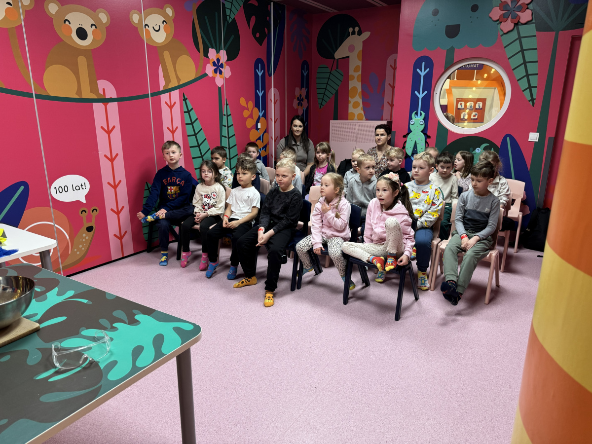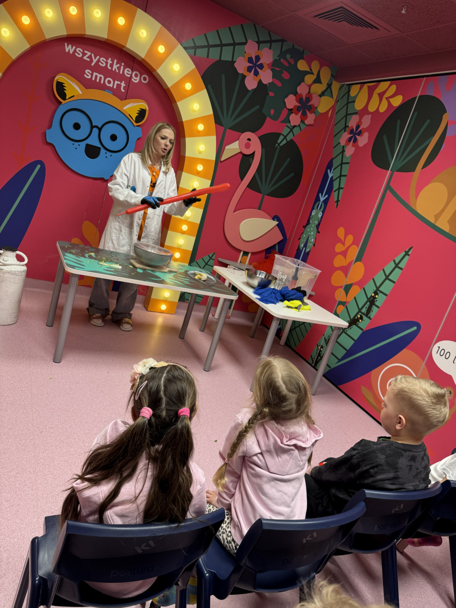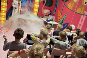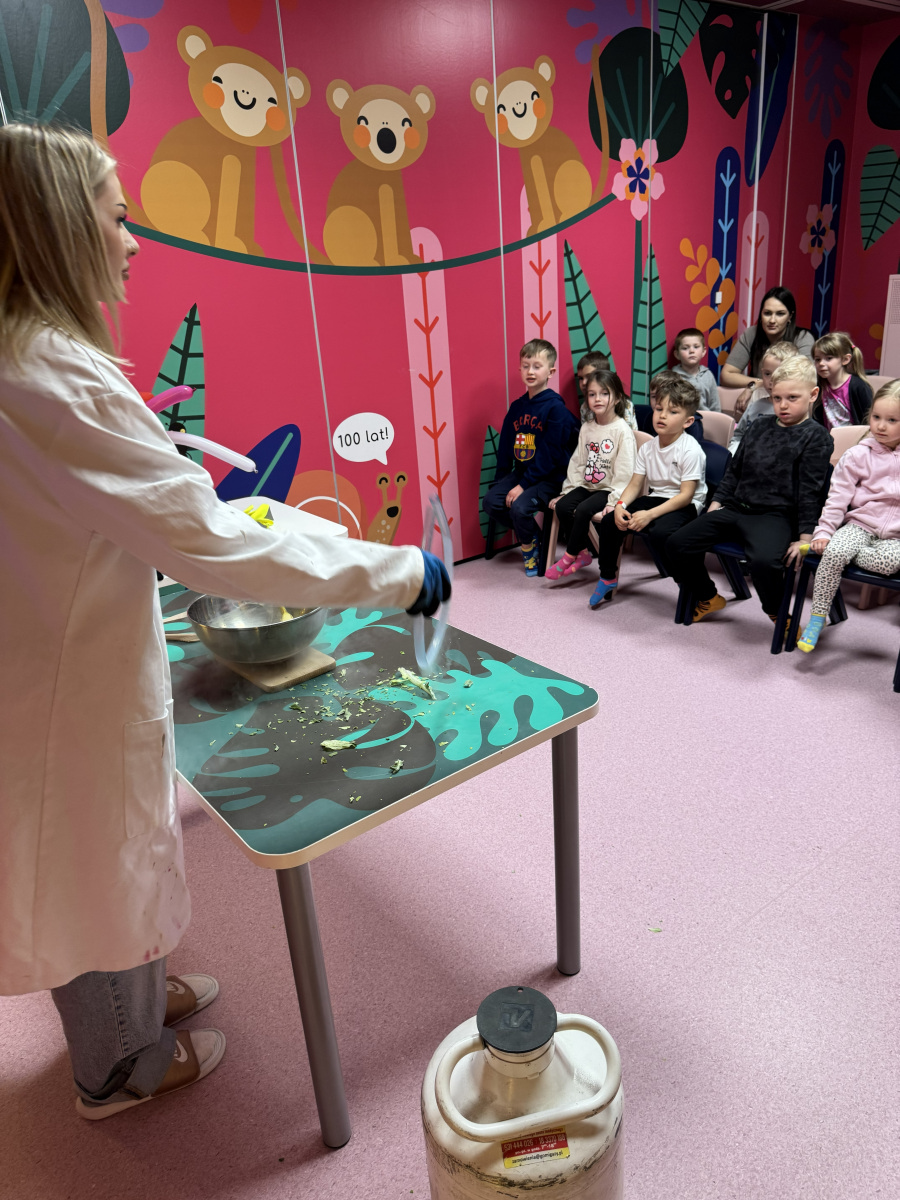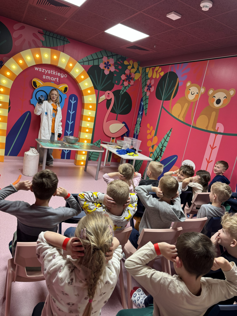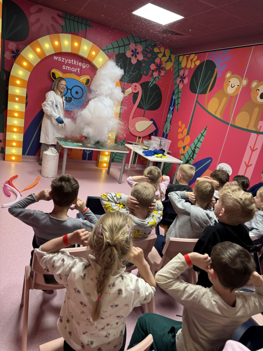 Ogromne emocje wzbudził również pokaz naukowy z wykorzystaniem ciekłego azotu – to właśnie on wywołał najwięcej zachwytu i niezapomnianych reakcji! Po pełnym wrażeń dniu dzieci zjadły pyszny obiad, a następnie w doskonałych nastrojach wróciły do przedszkola. Najpiękniejszym podsumowaniem tej wycieczki były słowa samych dzieci, które jednogłośnie stwierdziły, że był to najlepszy dzień w ich życiu… i od razu zaczęły pytać: „Kiedy pojedziemy tam znowu?”