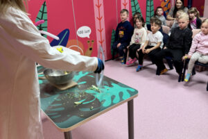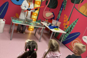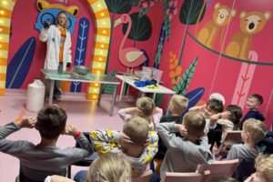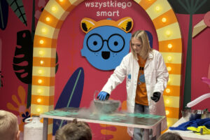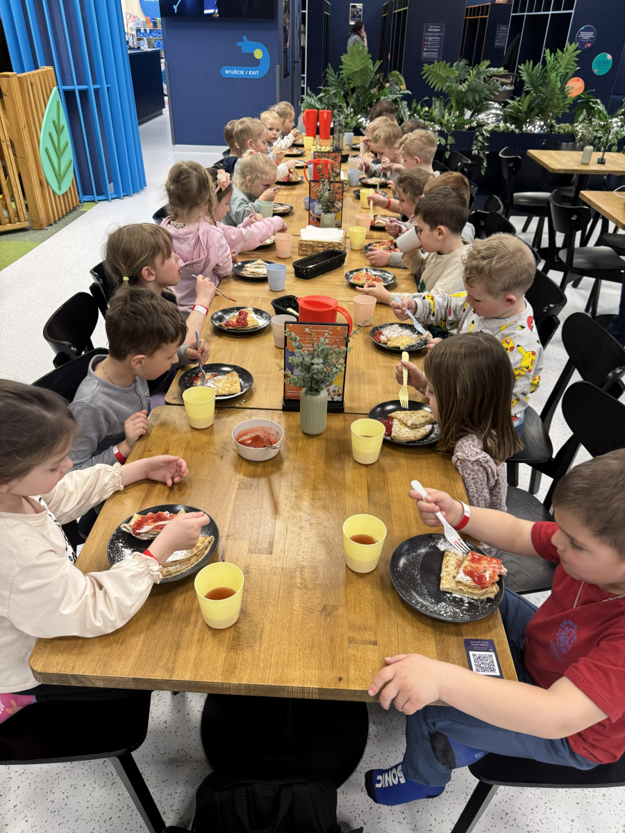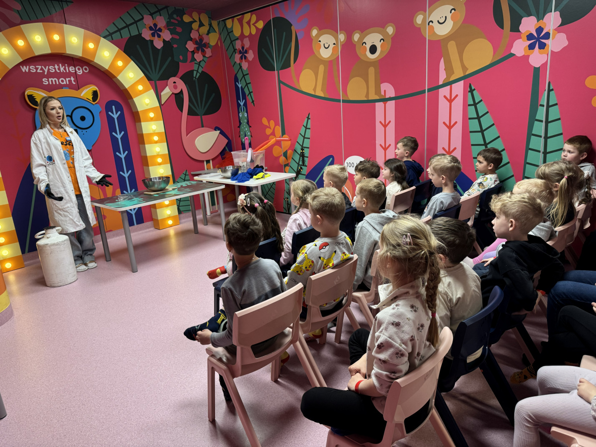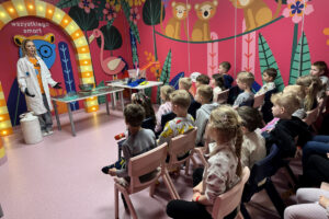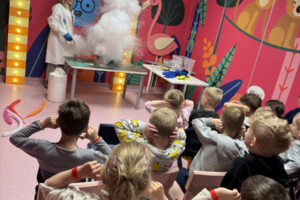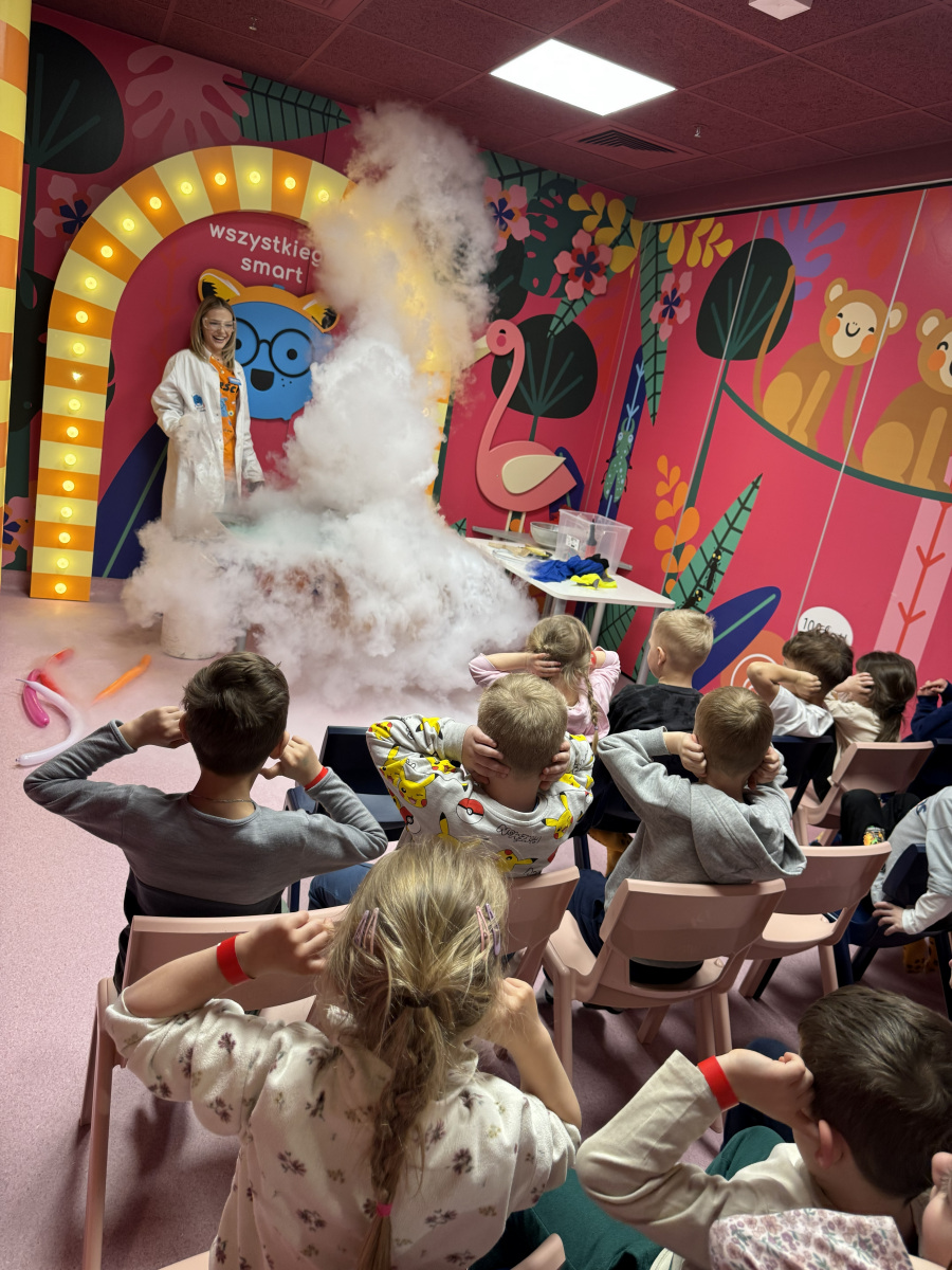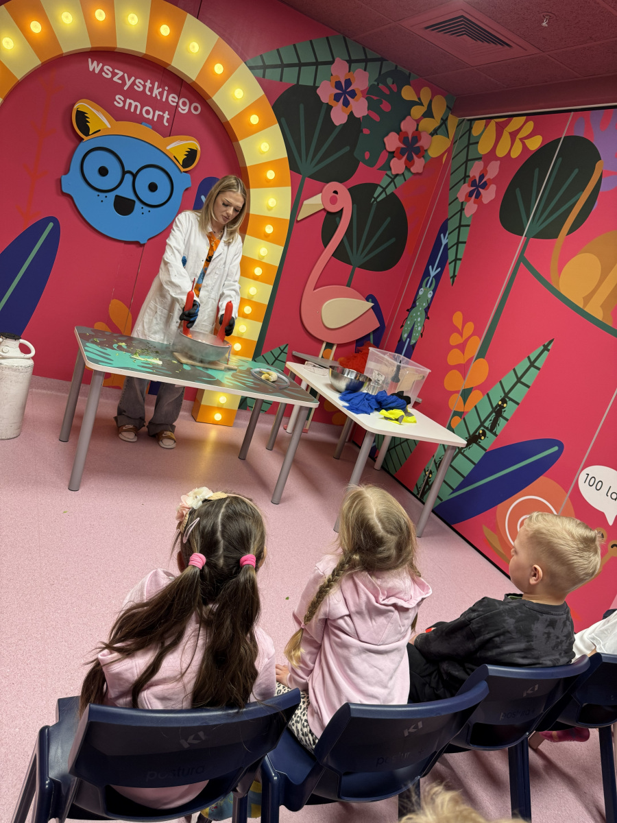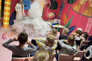 Ogromne emocje wzbudził również pokaz naukowy z wykorzystaniem ciekłego azotu – to właśnie on wywołał najwięcej zachwytu i niezapomnianych reakcji! Po pełnym wrażeń dniu dzieci zjadły pyszny obiad, a następnie w doskonałych nastrojach wróciły do przedszkola. Najpiękniejszym podsumowaniem tej wycieczki były słowa samych dzieci, które jednogłośnie stwierdziły, że był to najlepszy dzień w ich życiu… i od razu zaczęły pytać: „Kiedy pojedziemy tam znowu?”
